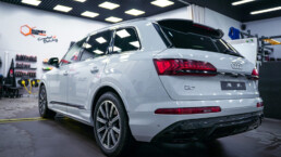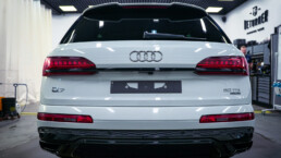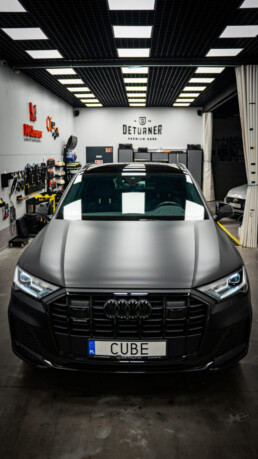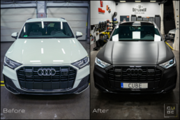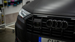 Metamorfoza zakończona! Audi Q7 przeszło spektakularną przemianę – z eleganckiej bieli na agresywną czerń w matowym wykończeniu. Efekt? Totalna dominacja na drodze! Co sądzicie o tej zmianie? Dodatki w postaci czarnych emblematów czy przyciemnionych tylnych kloszy dopełniają całości projektu