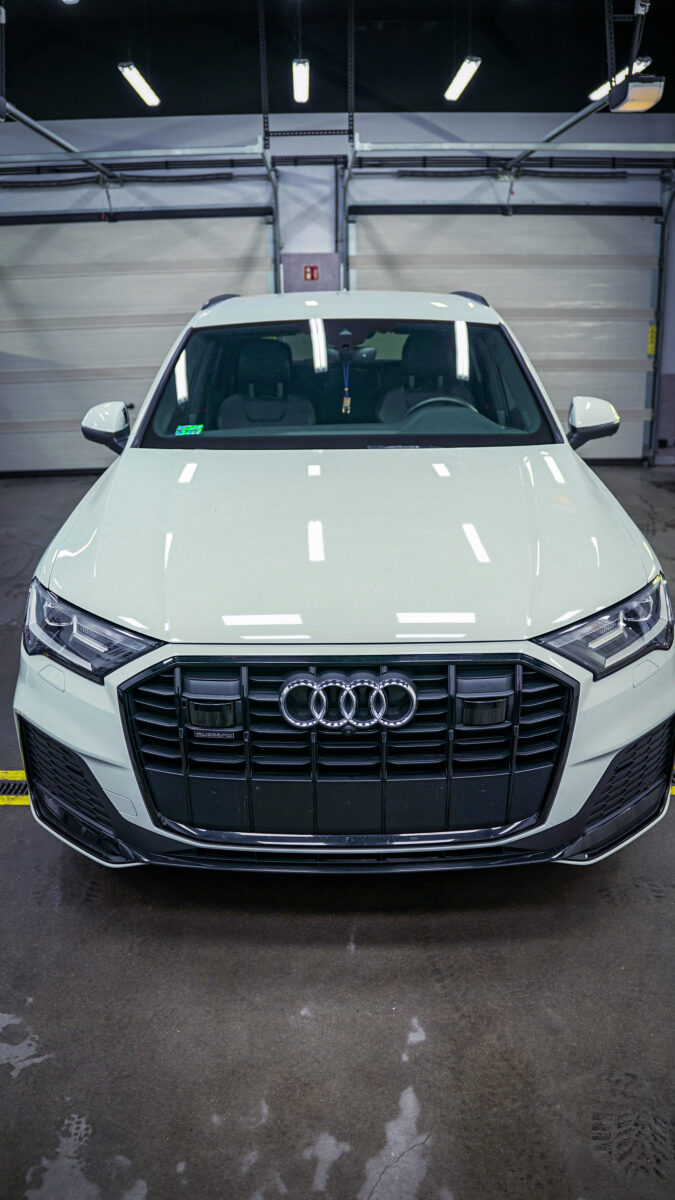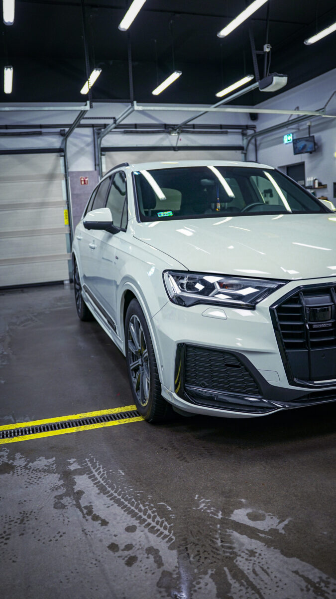 Metamorfoza zakończona! Audi Q7 przeszło spektakularną przemianę – z eleganckiej bieli na agresywną czerń w matowym wykończeniu. Efekt? Totalna dominacja na drodze! Co sądzicie o tej zmianie? Dodatki w postaci czarnych emblematów czy przyciemnionych tylnych kloszy dopełniają całości projektu