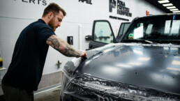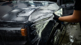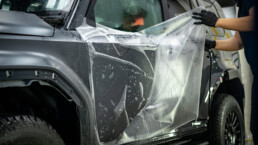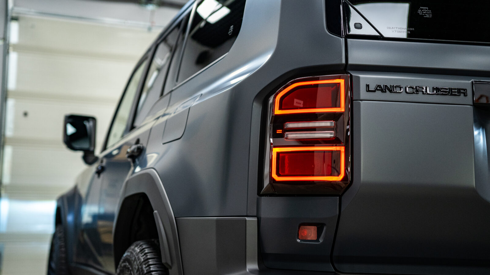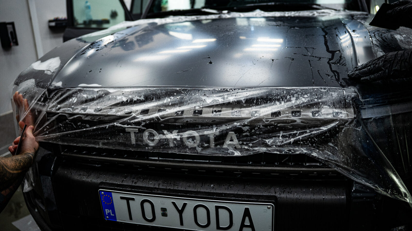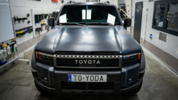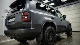 Mrożenie lakieru, czyli konwersja lakieru z połysku, na przepiękną satynę ! Samochód bardzo wymagający, ale udało się okleić wszystkie elementy z zawinięciem krawędzi i bez żadnych łączeń. Dodatkowo, przyciemnione klosze i szyby oraz oklejone na czarno dokładki zderzaków sprawiły, że ten Landcruiser zaczął wyglądać adekwatnie do tego, ile kosztuje.
