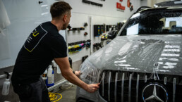 – około 0,3 metra kwadratowego folii czarnej PPF na pasy na masce.