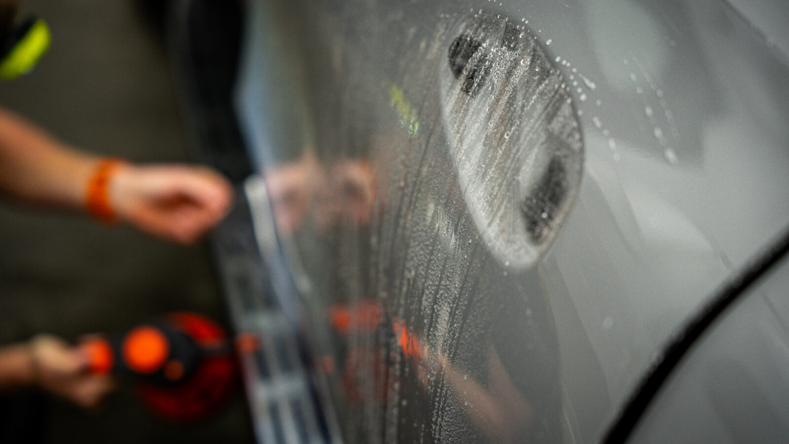 – około 0,2 metra kwadratowego folii matowej PPF na ekran, który chyba bije wszelkie rekordy wielkości w samochodach 😅