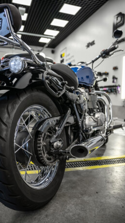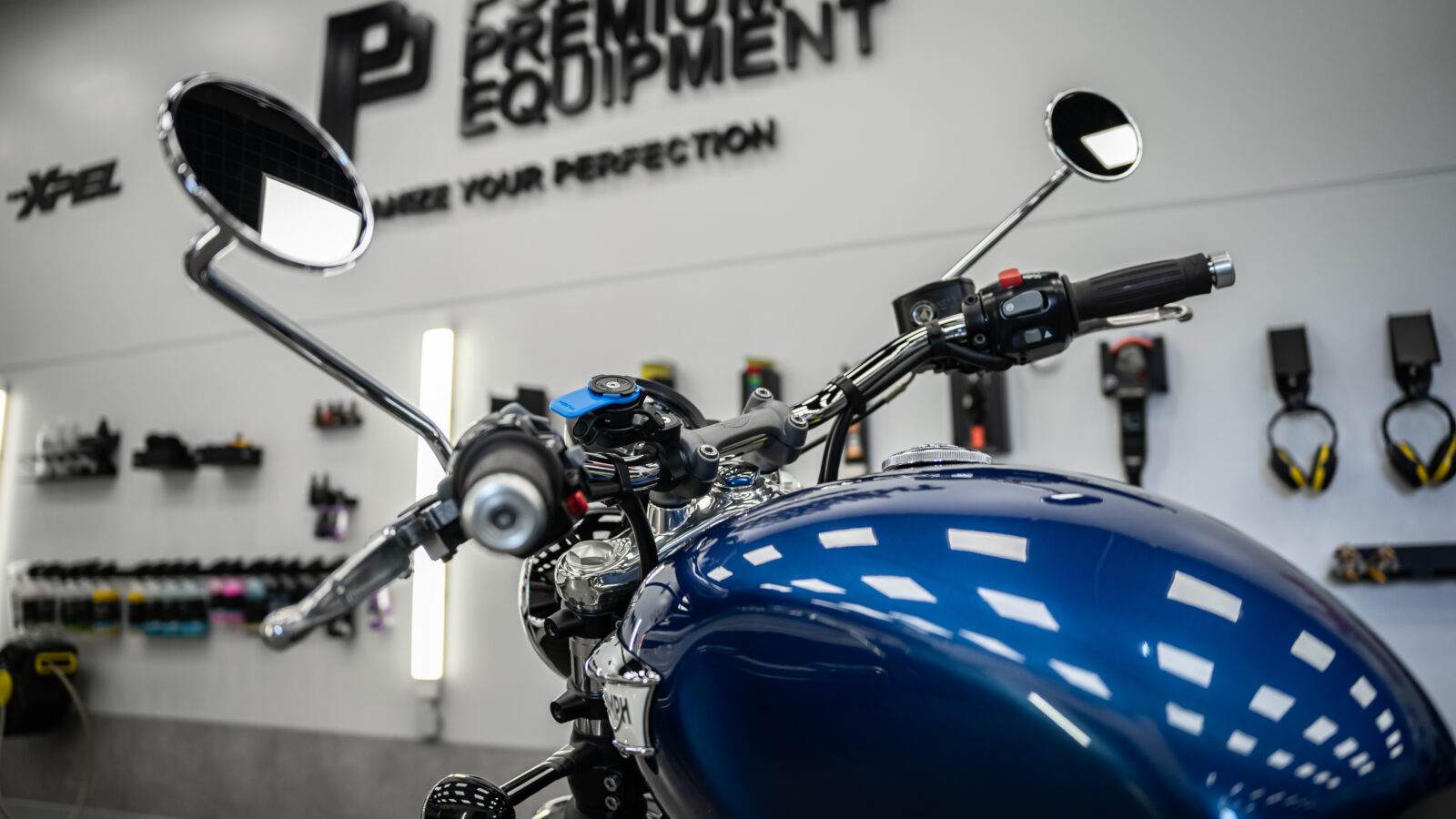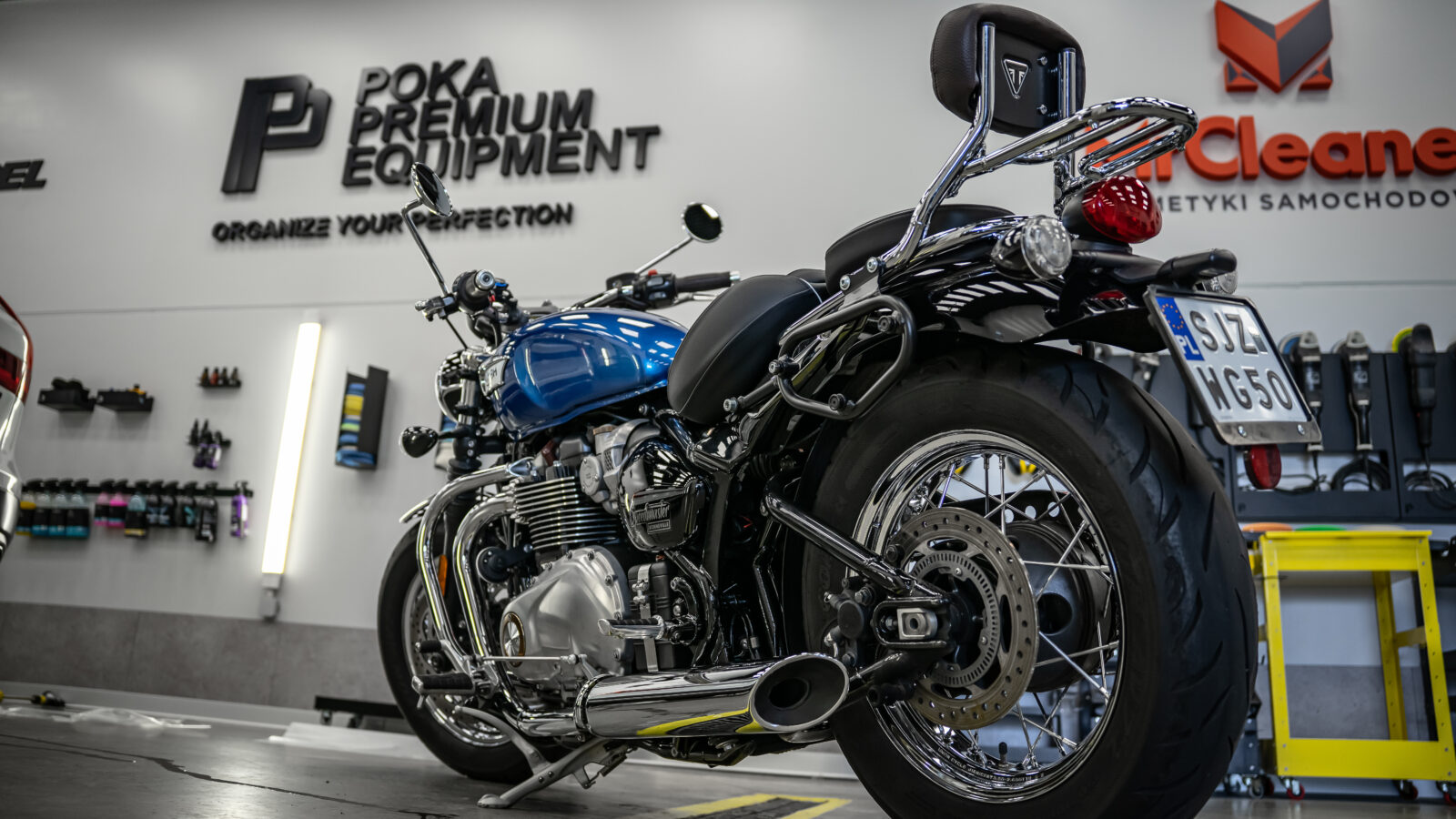 Motocykl naszego stałego klienta, któremu już jakiś czas temu zabezpieczaliśmy wszystkie lakierowane elementy bezbarwną folią ochronną PPF. Oznacza to nic innego jak idealny stan, bo cała reszta była przez nas na bieżąco dopieszczana.
